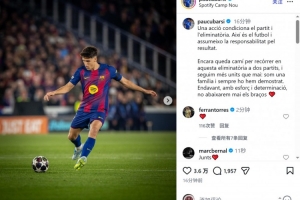 下一篇: 赛后落泪!加维社媒:我们本应得到更好结果,团结一心迎接次回合