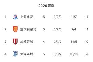 拿下德比!中超无罚分积分榜:上海申花排名第一,铜梁龙同积11分