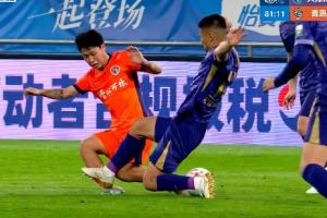 VAR介入!黄嘉辉蹬到金永浩小腿,主裁判看回放后出第2黄将其罚下