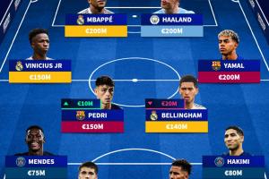 前锋:姆巴佩(2亿欧,皇马),哈兰德(2亿欧,曼城)